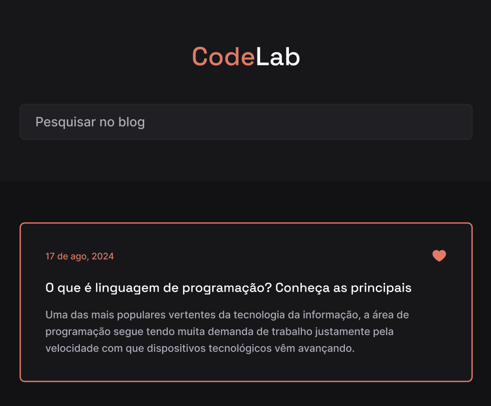 CodeLab é um exercício que foi passado para mim dentro de 30 exercícios. O Projeto consiste em criar um blog simples que tenha responsividade entre dispositivos.